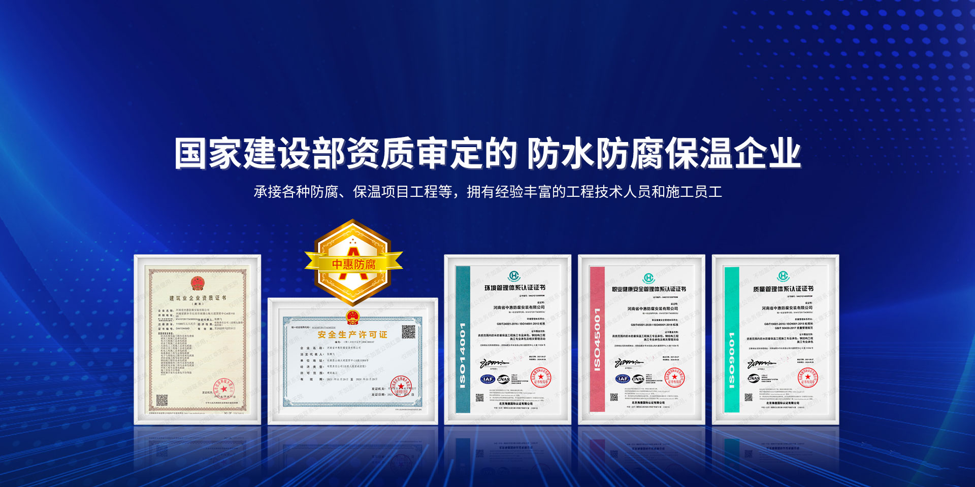 公司經營范圍:防水防腐保溫工程;消防設施工程;建筑裝修裝飾工程;建筑機電安裝工程;電力工程;建筑工程;石油化工工程;工業清洗工程;油罐清洗工程;鋼結構工程;環保工程;模板腳手架工程;電纜防火封堵、防污閃噴涂、外墻外保溫工程;各類施工勞務作業;設備維修、船舶鉚焊、涂裝;電力工程材料、建材、防水材料、防火材料、防腐保溫材料銷售,并相繼通過了GB/T19001-2008idtISO9001:2008GB/T50430-2007質量管理體系認證證書。GB/T24001-2004idtISO14001:2004環境管理體系認證證書。GB/T28001-2011idtOHSAS18001:2007職業健康安全管理體系認證證書。公司是中國防腐蝕于防護協會、中國施工企業管理協會、電力協會和中國鋼結構防水協會會員單位。 公司的經營業務涵蓋了石油、化工、電力、冶金、煤炭、船舶、國防、燃氣、水利、環保、交通運輸、航空及國防軍工和輕紡市政等行業的防腐保溫絕熱設備。鋼結構安裝、防火、防水、金屬噴鍍、聚脲噴繪、陰極保護、防滲透堵漏、玻璃鋼及各種磚版材料襯里、橡膠襯里、煙氣硫和耐酸溶劑腐蝕等工程施工。公司連續十年榮獲“省市先進施工企業”“安全生產先進單位”“重合同,守信用企業”和“AA***資質企業”的稱號。2000年被命名為市級文明單位,2002年被國家工商行政管理局命名為“重合同,守信用的企業”、被中國工業防腐蝕技術協會命名為“防腐蝕企業,能源節約及環境保護領域有豐富的經驗和***的業績。工程一次交驗合格率100%。其中攀枝花鋼鐵公司煉鐵廠四號高爐及熱風爐防腐工程、上海寶鋼公司煤氣柜防腐工程、撫順石油一廠裝置防腐項目、齊魯石化公司稀烴廠高塔防腐工程、吉林化學工業公司煉油廠油罐防腐工程、天津石化熱電廠六號爐頂棚聯絡管保溫工程、大慶油田(太倉)力神泵業工程、中國化學工程第十一建設工程、中原油田勘探局工程、中國石化銷售有限公司華北分部、魯皖輸油管道工程、貴州開磷息烽合成氨工程、陜西黃陵煤化工程、中國石油天然氣西部管道塔里木輸油工程、邯鋼集團邯寶鋼鐵公司煉鐵工程、德州供電工程、吉寶(南通)船廠工程,偃師華潤熱力工程、鄭州熱力總公司。 河南省中惠防腐安裝有限公司愿以豐富的施工經驗,***的技術,***的設備,***的管理,***的服務,竭誠為國內外廣大的用戶提供***滿意、******的工程作品。 我公司愿與國內外同仁一道,團結協作,共同推進防腐蝕行業發展! 公司地址:河南省長垣縣建設路北段360號 固定電話:0373-8866488 郵編:453400 網址:http://www_zhff_com_cn.pdmlv.com